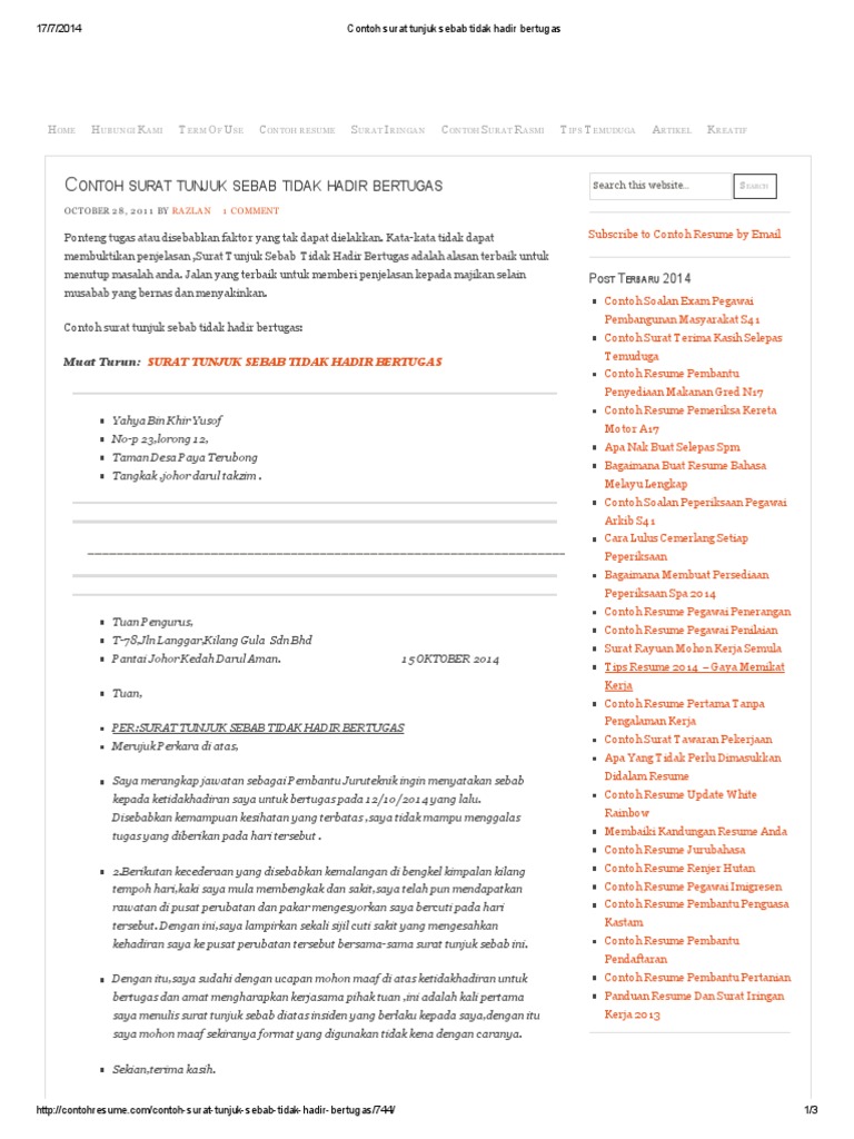 Surat Tunjuk Sebab Tidak Hadir Bertugas Pdf